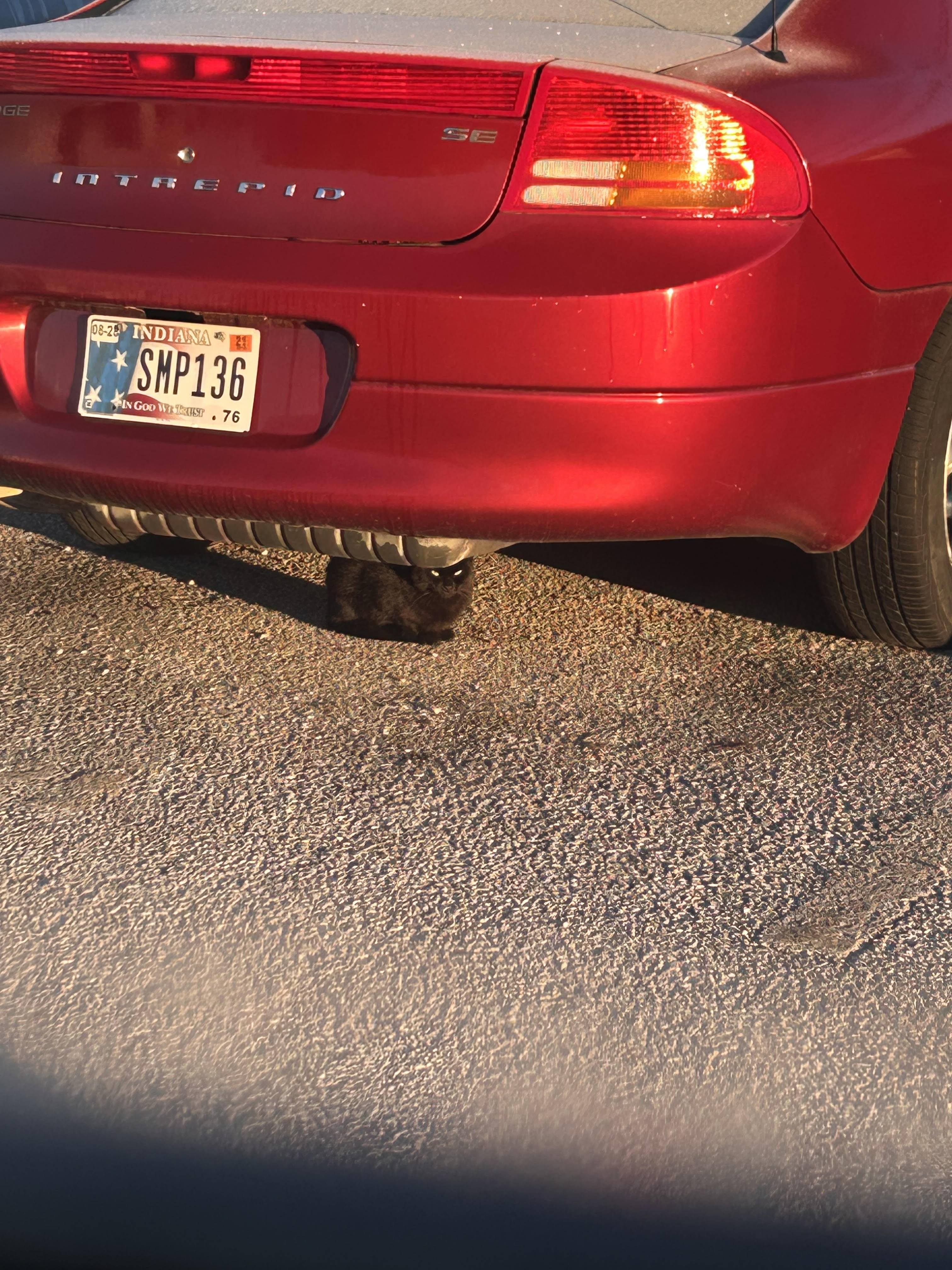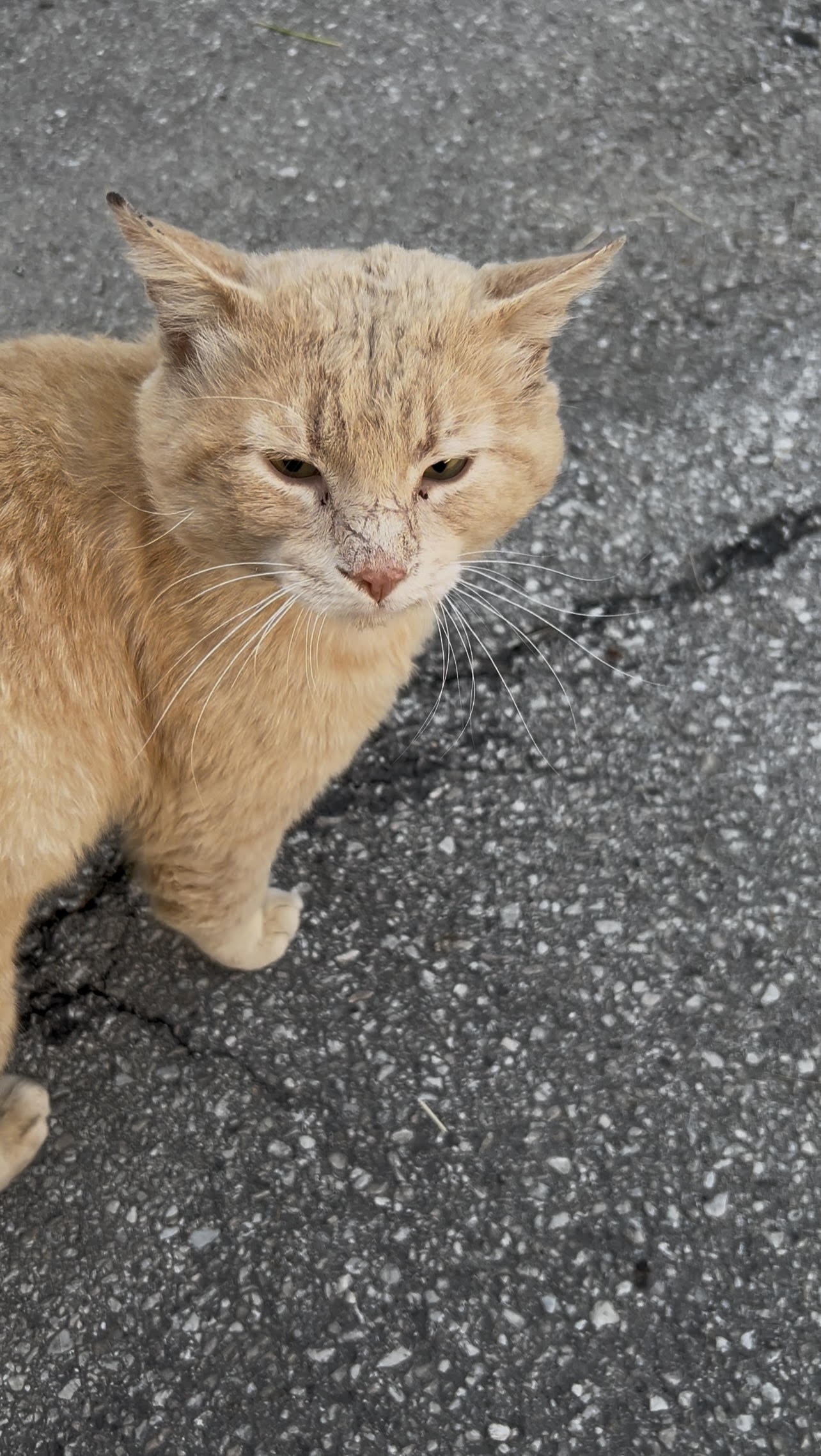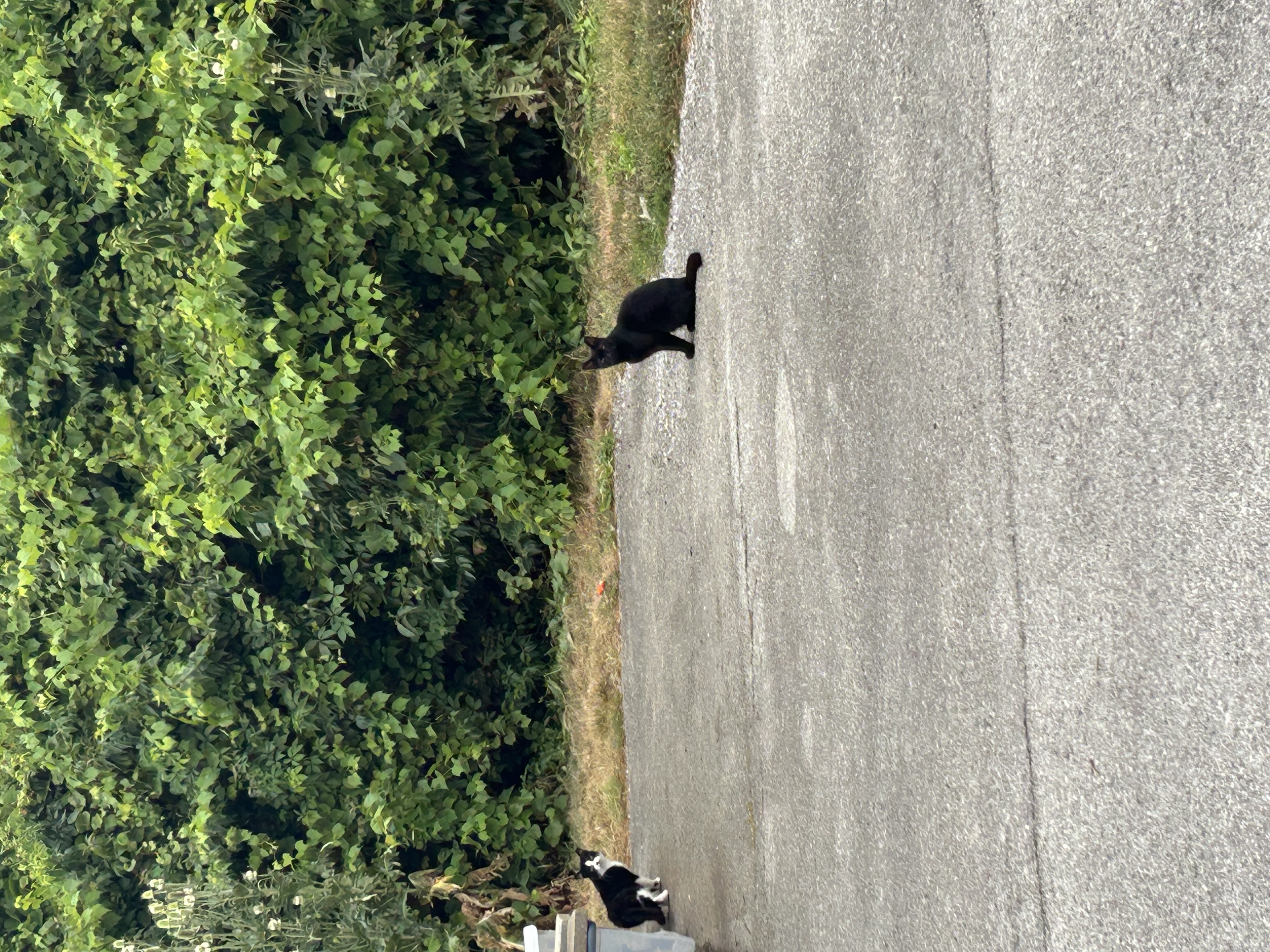 I first met the dumspter kitties around 2024. There's a couple dumpsters at my work and while taking out trash I saw one sitting at a nearby shed eating some food set out for them. I had seen cats around my work but I kept seeing them more frequently whenever I took some trash to the dumpsters therefore I named them the "dumpster cats". Most of them are too scared to let me get close. I got close to one of the black cats in the pictures but of course its loud around my work so they usually still get startled and run away. On one rare occastion this dilute tabby who I had never seen before was just chilling waiting his turn for some food. I thought to see if he was friendly and to my surprise He actually let me pet him and he loved it. After that day I have yet to see him again. He's most likely getting food from a different area which I hope is the case.