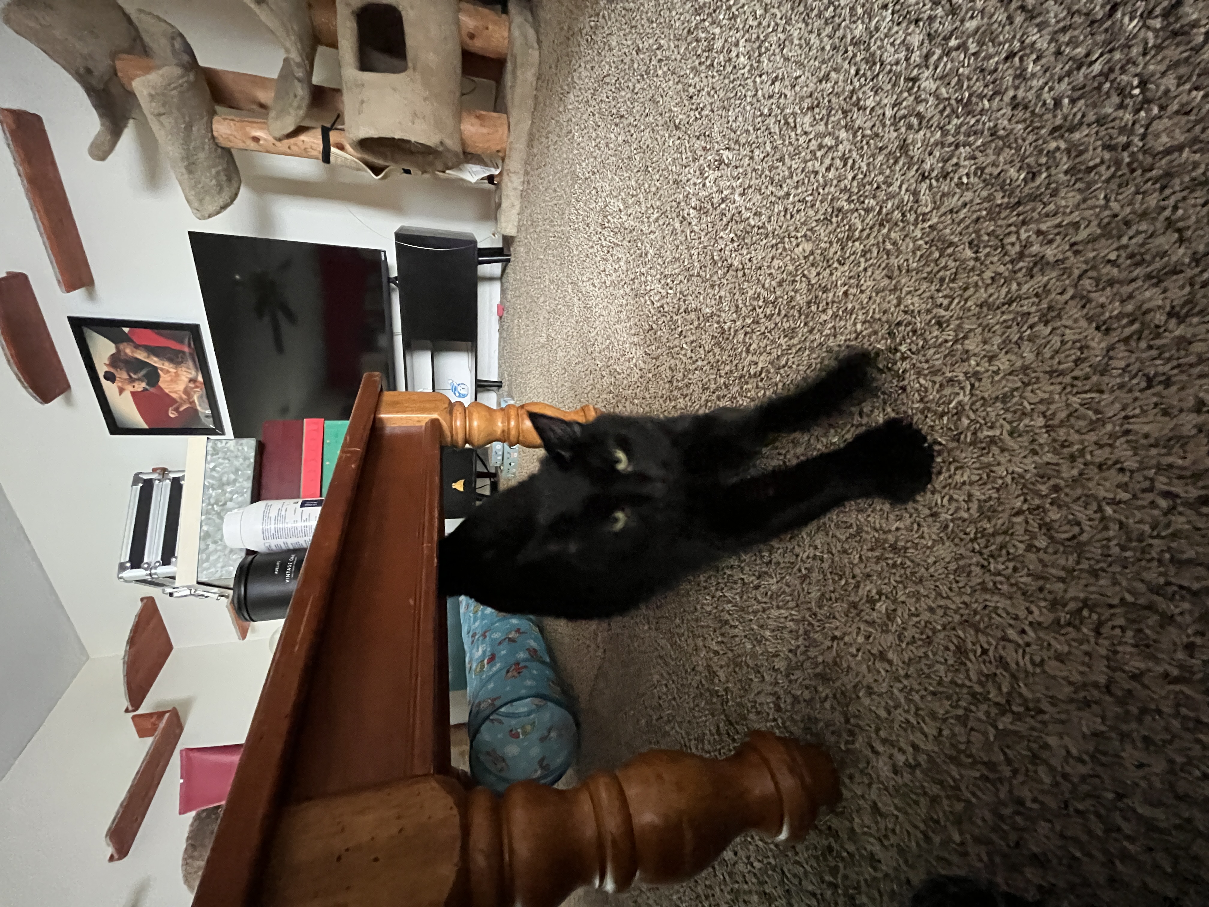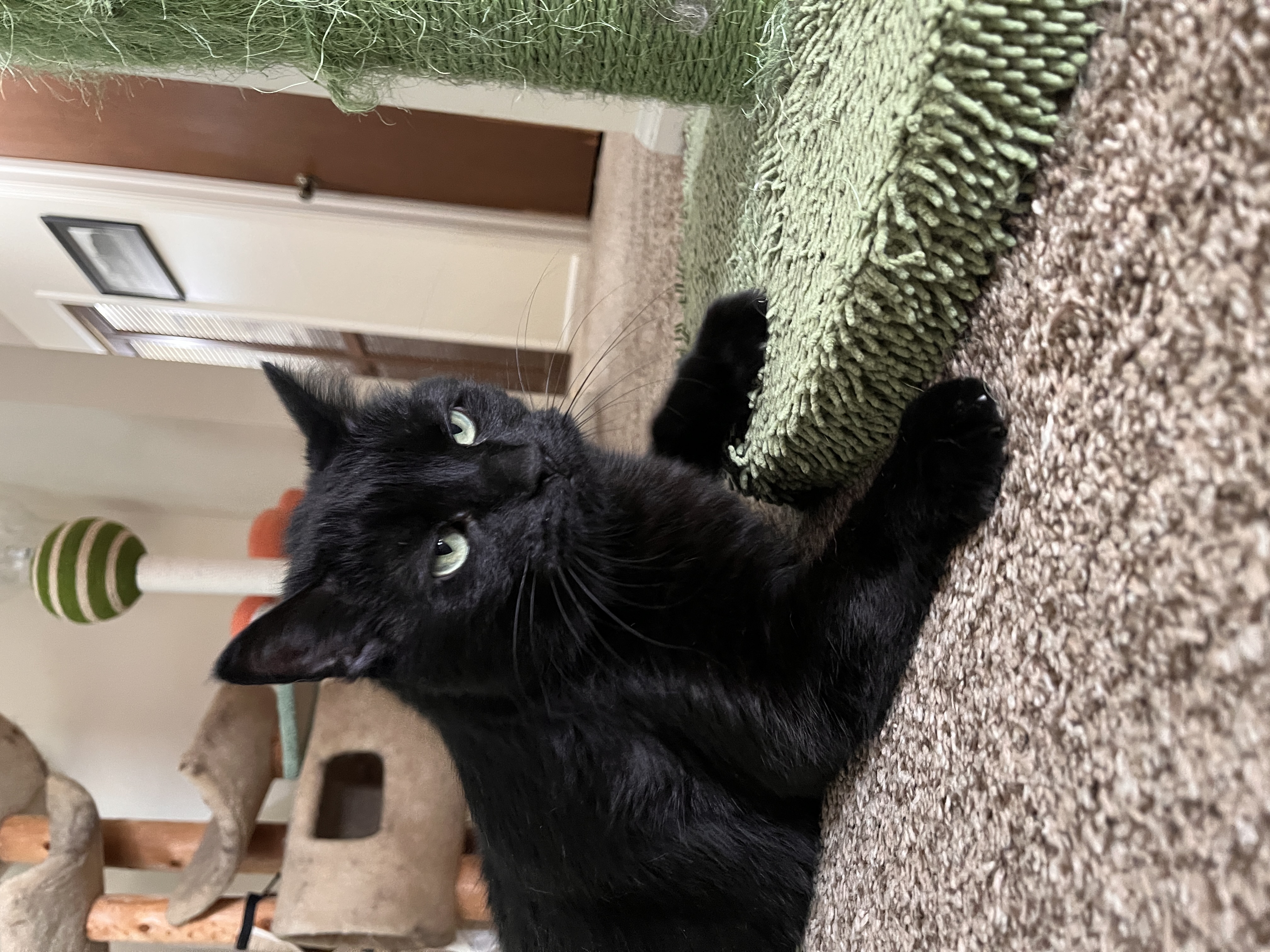 I first met Jelly when pet sitting with Abbi at Chele's house. Jelly was orignally at a shelter and had a hard time getting adopted cause of some medical factors and other things at play. After being in the shelter for a long time , Chele decided to adopt Jelly and since then Jelly has been living a happy life with Chele's other cats. Jelly loves licking people and will get a little forceful if you don't let her do so.